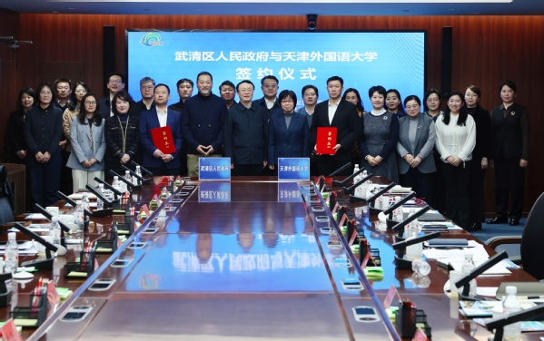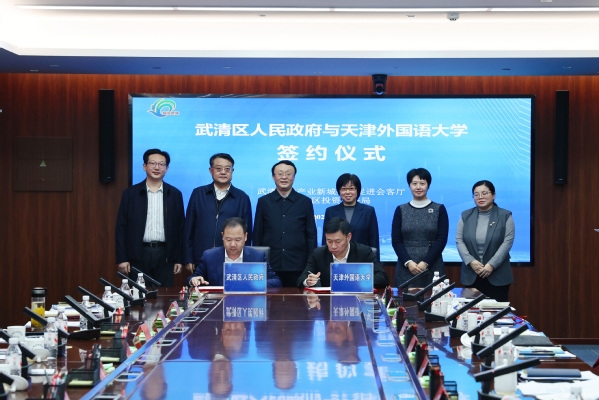 为深入学习贯彻党的二十届四中全会和习近平总书记视察天津重要讲话精神,积极服务国家战略与区域发展,1月8日,天津外国语大学与天津市武清区人民政府全面战略合作框架协议签约仪式在武清区投资促进局举行。武清区委副书记、区长许颖悟,副区长马红丹,区政府办公室主任张新鹏,区投促局局长、区政府办公室副主任张鹏等出席相关活动。天津外国语大学党委书记、校长李迎迎,副校长冯鹏率学校调研团出席活动。此次签约标志着双方将在人才培养、国际交流、产学研融合、服务区域发展等方面开启全方位、深层次的合作新篇章。